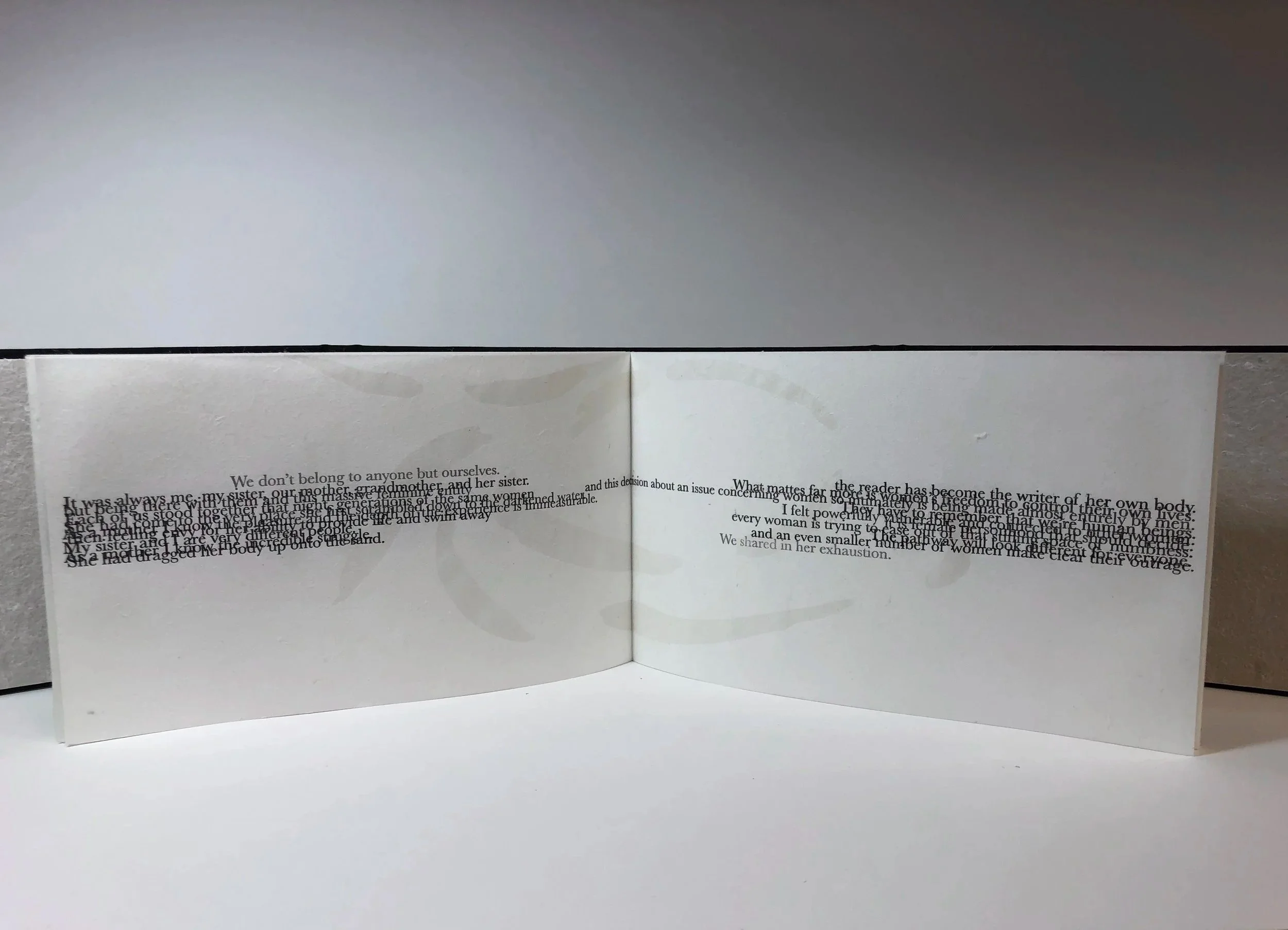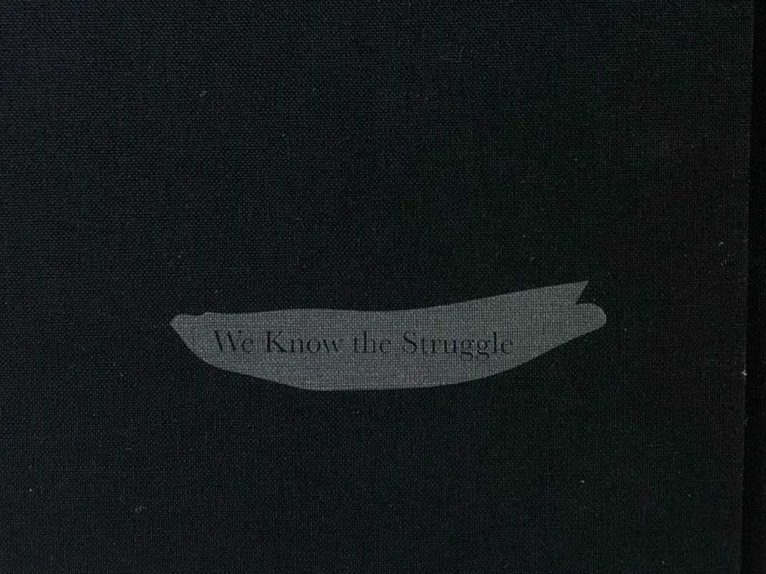 “We Know the Struggle” was written by Nancy Tait, Kathy Thomas, Emily Gabriel, and Kasey G., and also uses excerpts from online articles authored by women. The edition was designed, printed, and bound by Kasey at The University of Alabama in the Fall of 2019. “We Know the Struggle” was printed on handmade Mulberry and utilizes raw and blended cotton papers handmade by Kasey for the cover and the case. The typeface is handset 15 pt. Baskerville.